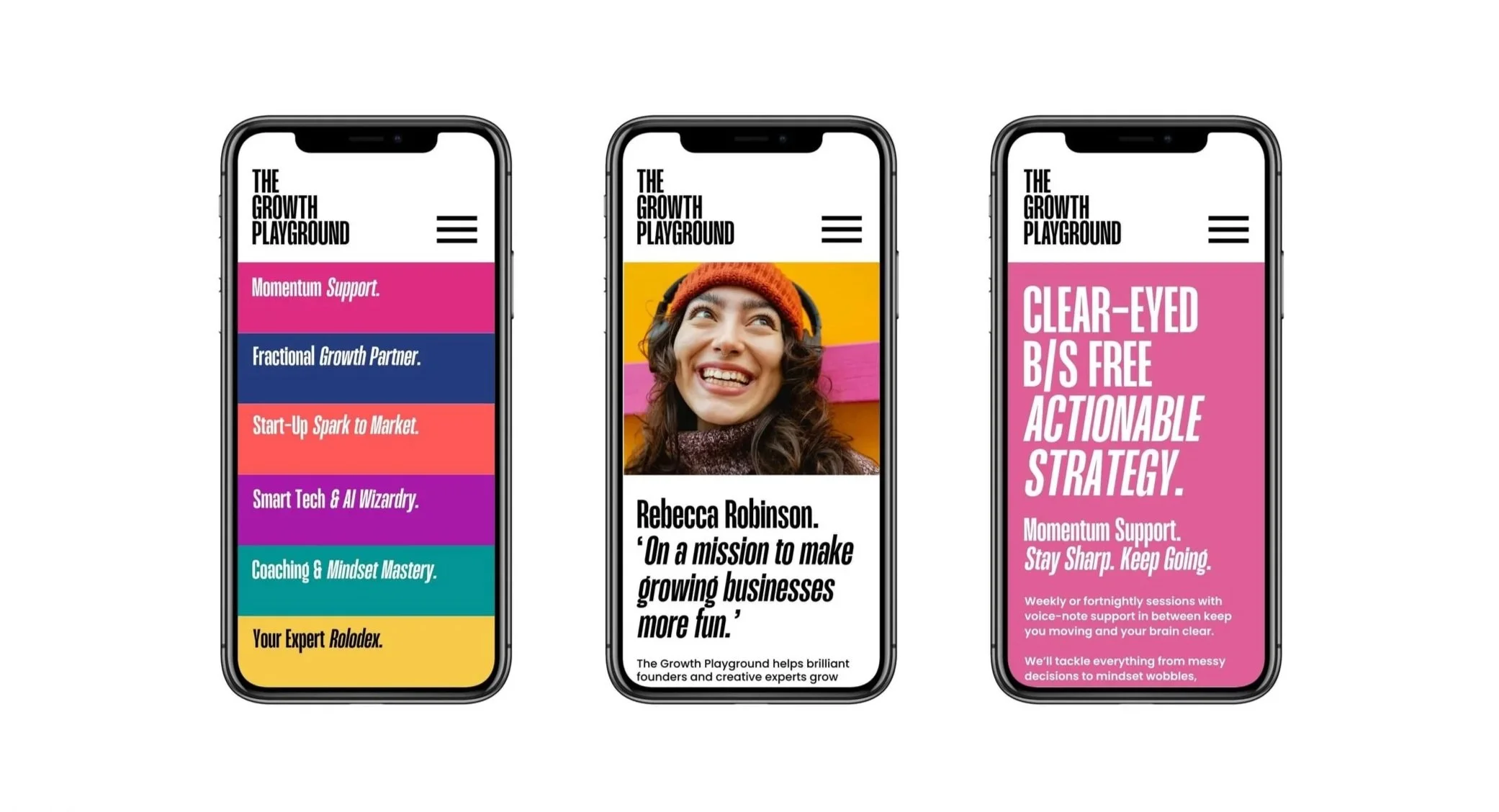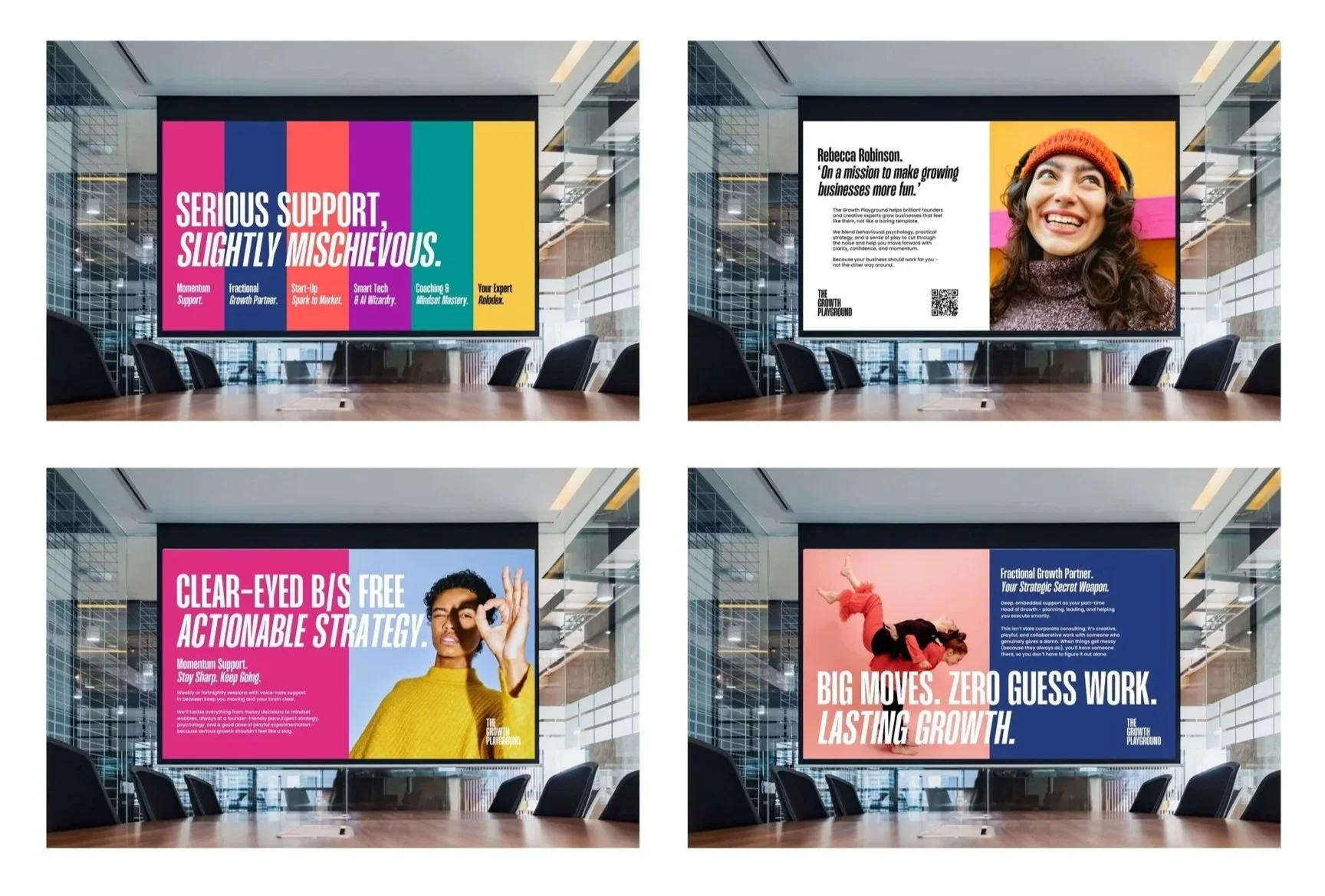 Working with Rebecca to create this identity and visual language was a fun, collaborative and creative process, one that I believe is indicative of the uplifting experience that founders of new, early stage and evolving businesses will have when working with her.In a space so often expressed and delivered in a formulaic and ‘typical’ manner, Rebecca is undoubtedly challenging the stereotype with ‘The Growth Playground’.In the words of one client ‘It’s like therapy, strategy and a confidence boost all in one’.
